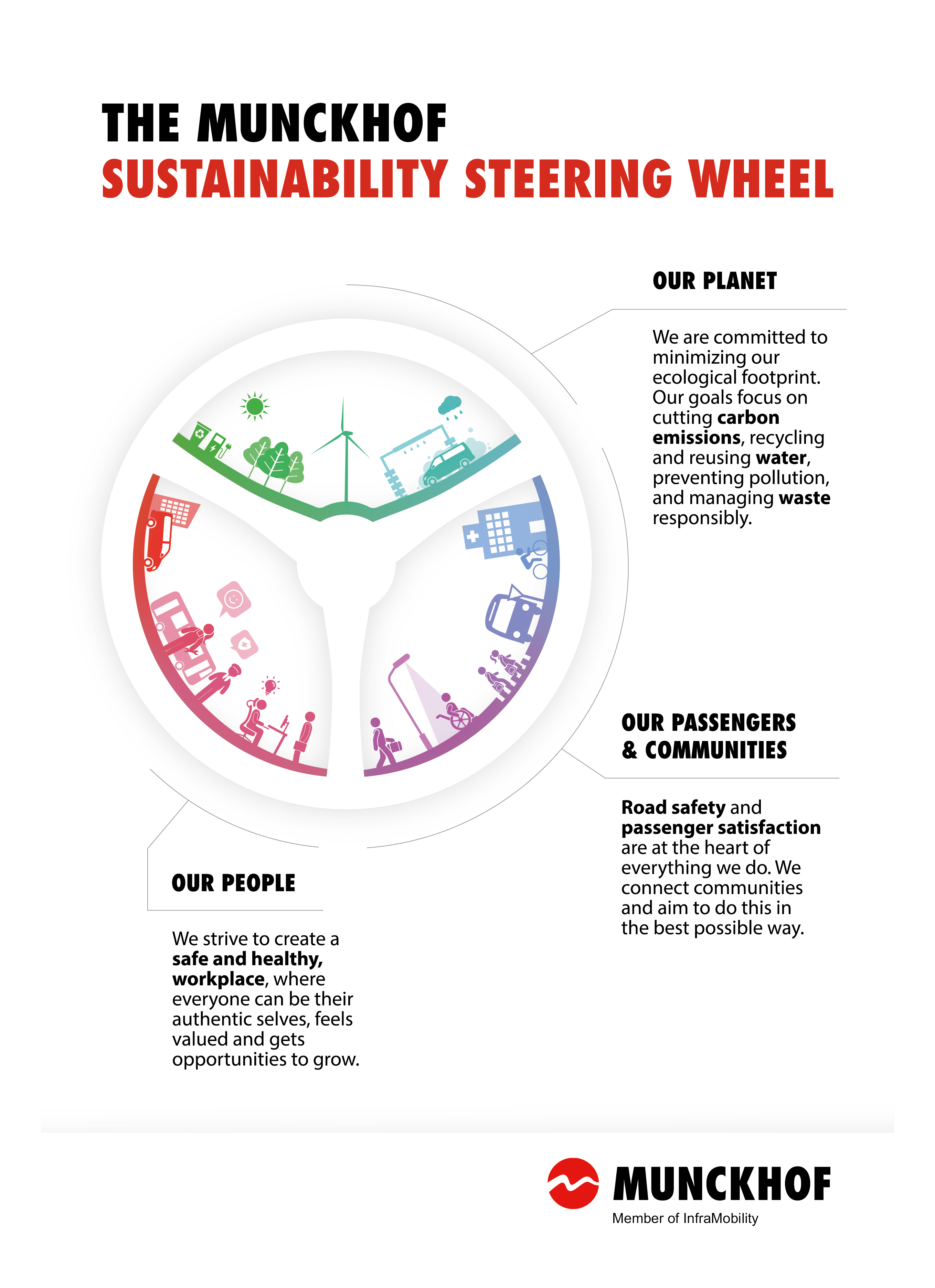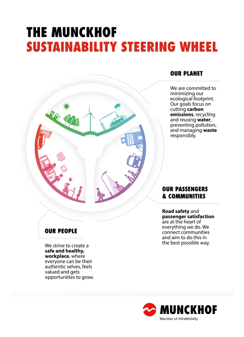 For Munckhof, sustainability means fully embracing our responsibility across three core themes: Our people, our passengers & communities, our planet.