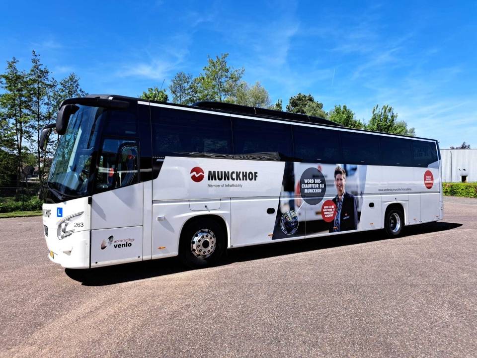 Kandidaten die zich aanmelden voor de opleiding tot touringcarchauffeur volgen hun rijlessen bij Vervoerscollege Venlo, met een lesbus die speciaal door Munckhof beschikbaar is gesteld. De rijopleiding duurt gemiddeld vier tot zes maanden en biedt een unieke kans om zonder financiële drempel een carrière als buschauffeur te starten.