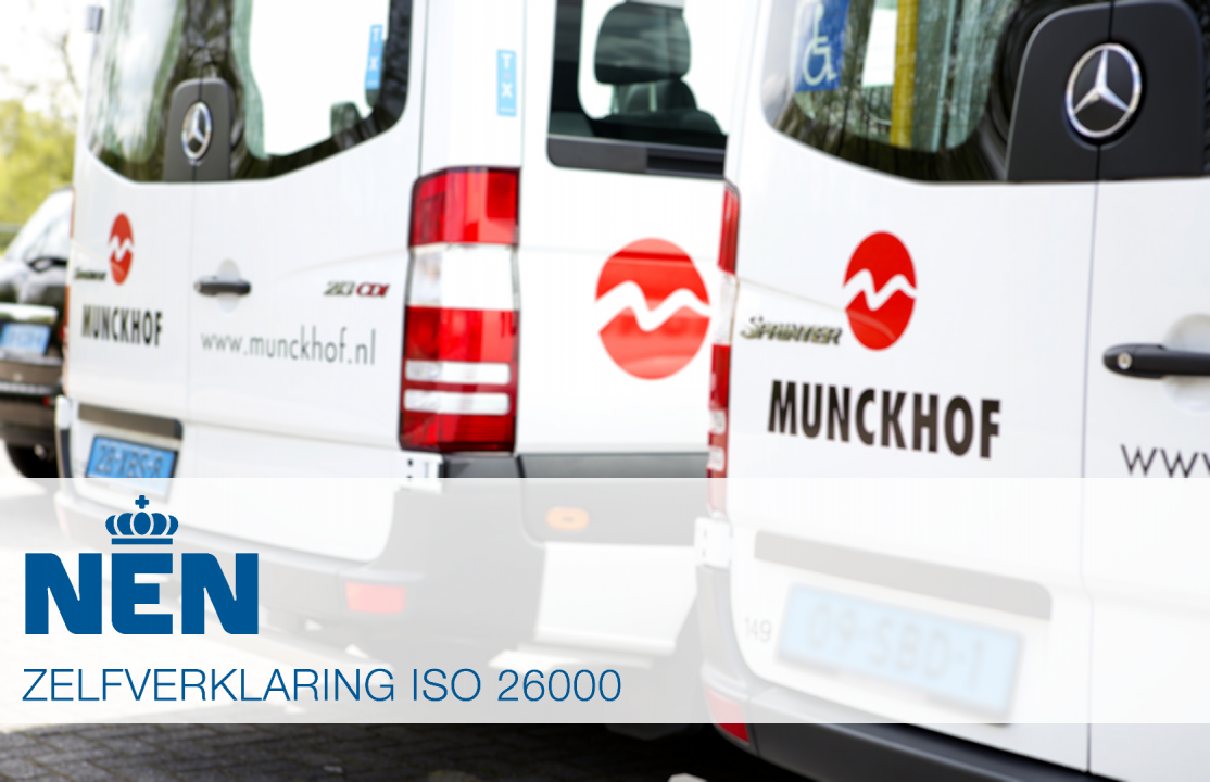 Munckhof is trots hierin de eerste organisatie binnen de taxibranche te zijn. Dat vindt ook Jos Poortinga, directeur Munckhof Taxi: “Binnen Munckhof zijn we continu bezig met het thema Maatschappelijk Verantwoord Ondernemen. De ISO 26000-norm biedt ons hierbij handvatten en de mogelijkheid transparant te zijn naar derden. De MVO-gerelateerde acties, zoals cursussen voor ‘Het Nieuwe Rijden’, duurzame transportmiddelen en continue verbetering van het milieumanagementsysteem, zijn voor ons vanzelfsprekend. We hopen hiermee een voorbeeld te zijn voor andere organisaties in de taxibranche.”